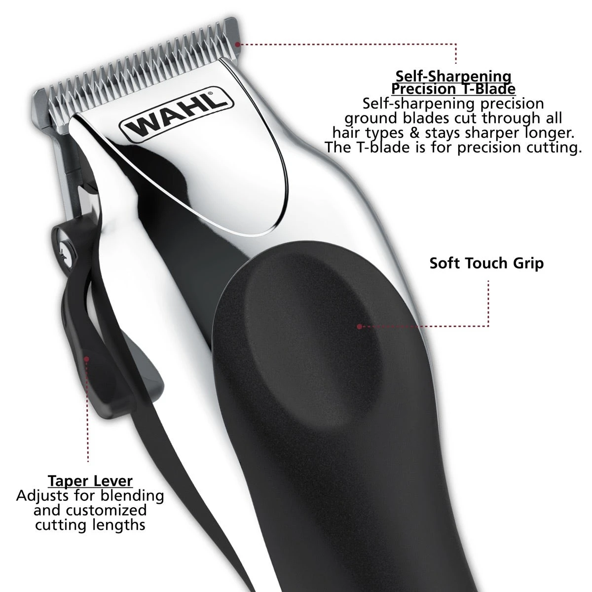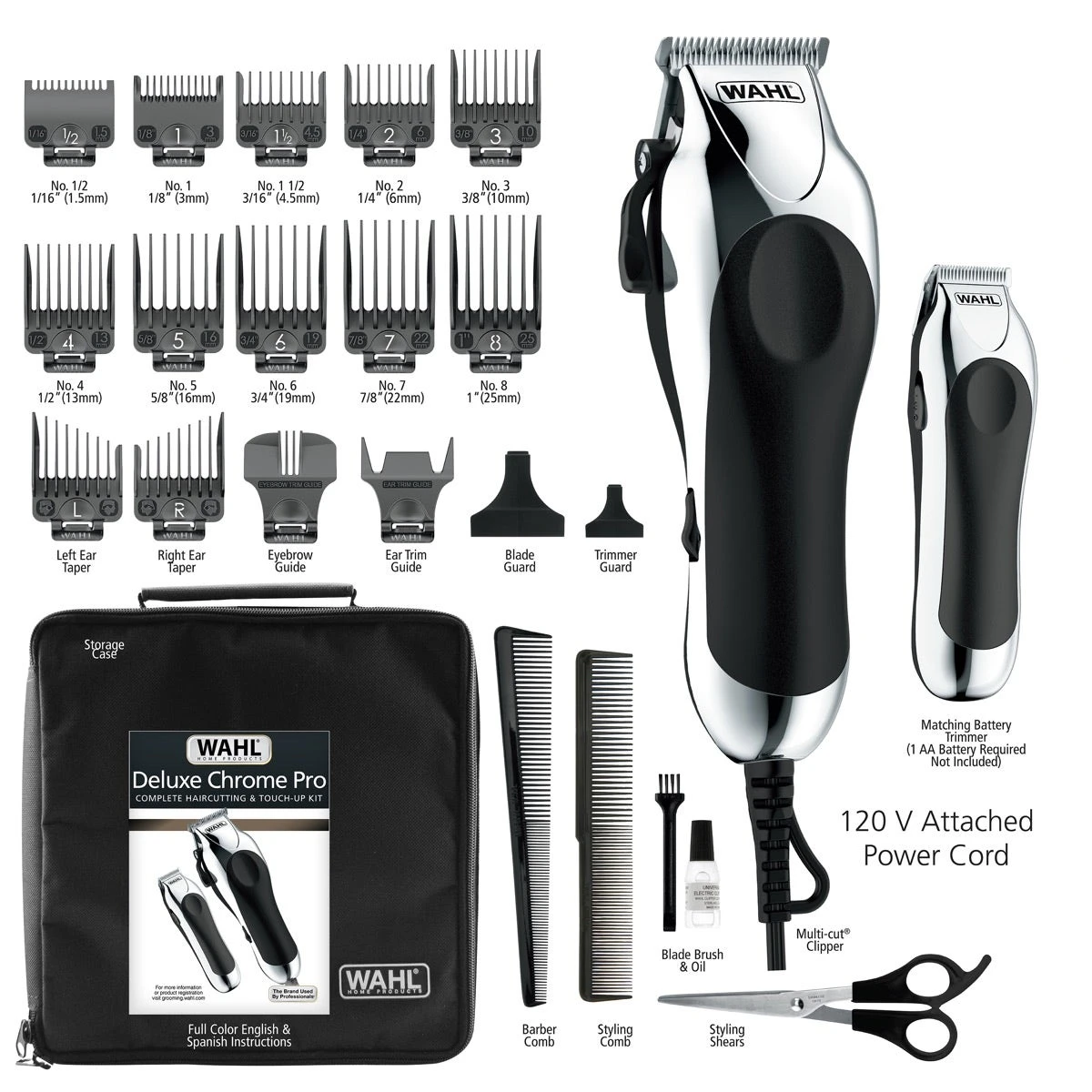 The Deluxe Chrome Pro® Combo Kit is the perfect kit for haircutting and detail trimming at home. This complete kit comes with a powerful corded hair clipper with included taper lever for blending and fading haircuts. Attach any of the 14 attachment guards to the clipper to achieve even cutting lengths between 1/16″- 1″. The included battery trimmer is perfect for touch up trimming after your haircut to clean up around the ears and neckline. This trimmer requires AA batteries for operation that are not included. Store all of the haircutting kit accessories in the included soft handled zipper storage case for easy storage and travel. This kit has everything you need for your next haircut at home.