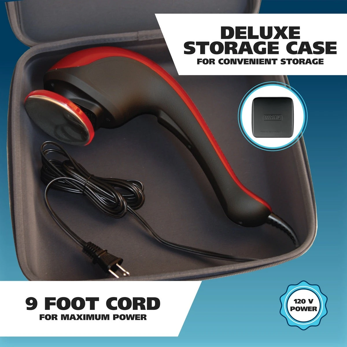 Wahl’s Deluxe Heat Therapy Massager is a corded massager with variable intensity for light to intense massage. Comes complete with 8 attachment heads including a extra-large PTC heat attachment head. All packaged in a soft zippered storage case. Enjoy the benefits our handheld Heat Therapy massager has to offer; features variable intensity for light to intense massage, 8 attachment heads including an extra-large PTC heat attachment head, & a soft zippered storage case. Featuring a wide variety of attachments for various styles of massage; Triad, Heat, Round Ball, Pinpoint, Four Finger Flex, Facial, Power Disc, & Soft Applicator. Our power cord is 9 foot in length providing increased length and durability to give you greater flexibility during usage; treat yourself to a post work out massage or after a stressful day at work. Heat Therapy’s sleek, long handle for all-over muscle comfort for the back, neck, shoulder, legs, hands, feet, full-body, cellulite, & more; professional quality & therapeutic to release pressure points, promote circulation, reduce inflammation, muscle soreness, stiffness, chronic pain, & fibromyalgia. Adding massage to your pain management for injury recovery or chronic pain to help decrease inflammation, relieve pain and discomfort, relieve muscle tension, tightness, and stress. It can also help improve your recovery and healing.