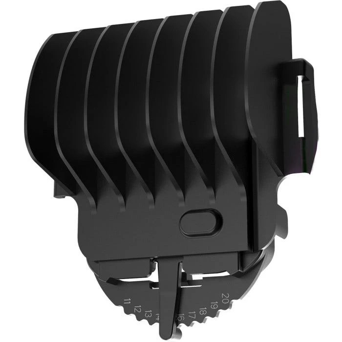 This extra long 10-position adjustable t-blade trimmer guide comb fits standard and ultra-close trimmer t-blades. The adjustable lever allows you to achieve cutting lengths between 12mm on the lowest setting to 21mm on the largest setting. It fits trimmer blade models: 02141-101, 59332, 02144-200, 02144-500, 02229-100, & 02229-1101.