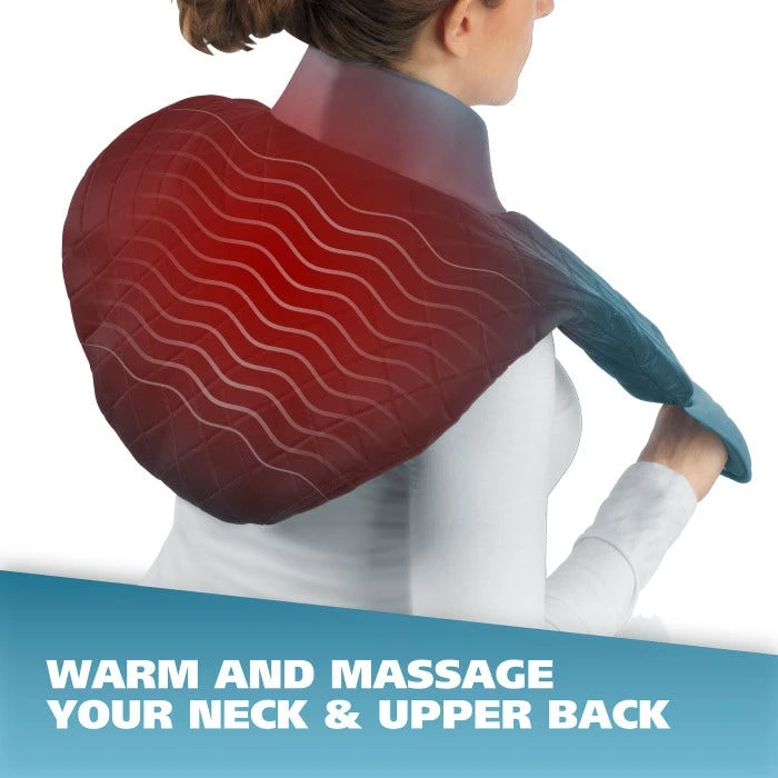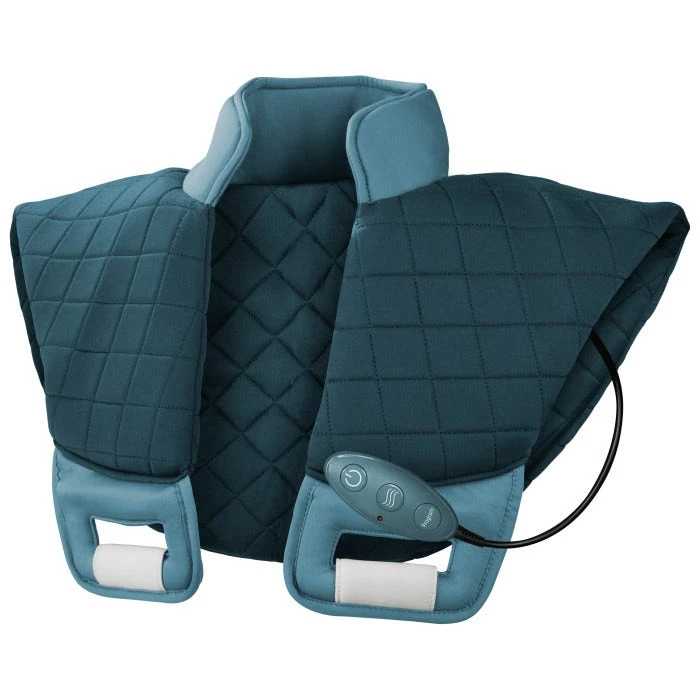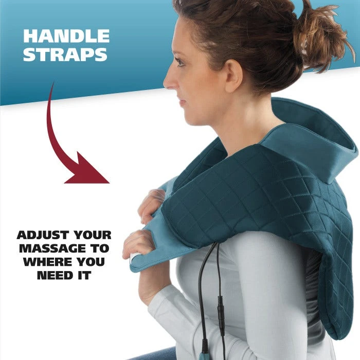The Neck and Back Massage Wrap provides a heated upper back and neck massage. The massager comes pre-programmed with 2 massage patterns and optional heat. It also contains hand grips that allow you to control the position and intensity of the massage.