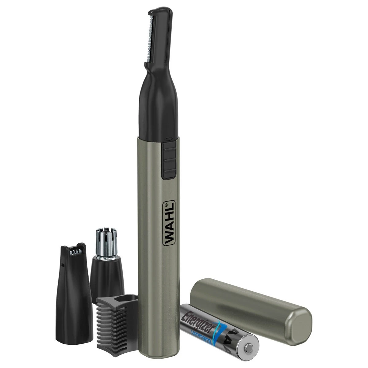 Trim anywhere with incredible precision. This trimmer removes unwanted hair without nicking or pulling. Includes 3 interchangeable heads: Detail Trimmer, Ear/Nose Trimmer, & Reciprocation Trimmer Heads. Easily touch-up beards and necklines with the Detail Trimmer Head, add the included guide comb to shape and trim eyebrows. Use the Ear/Nose Trimmer Head for hygienic grooming of ear and nose hair. The Reciprocating Head is great for fine detail trimming of eyebrow and beard hair. Also included in the kit is a Lithium AAA battery for 3.5 hour runtime