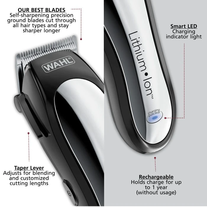 - Lithium-Ion power provides rechargeable cordless hair clipper use