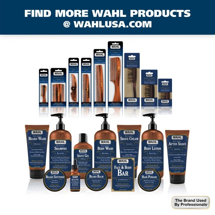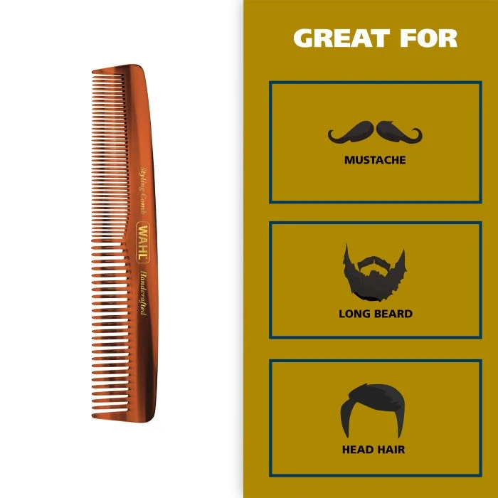 Wahl’s Styling Comb is the right tool for shaping, styling and grooming your short/medium/long facial hair and any style head hair. Made of a plant derived material, our comb applies oils and protects the skin far better than synthetic materials. Use this comb to massage and penetrate skin the skin beneath the beard and/or hair for healthy skin cell turnover and healthy hair growth. This will help to prevent “beard-druff” (dandruff of the beard) and other irritations from facial hair