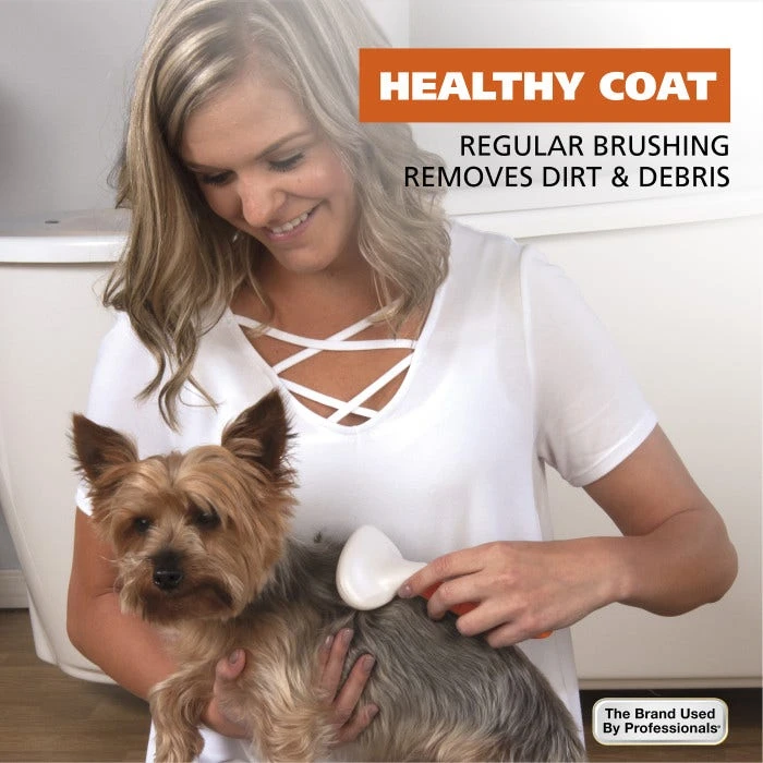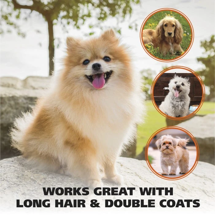 - Stainless steel angle tipped pins that safely remove shedding fur